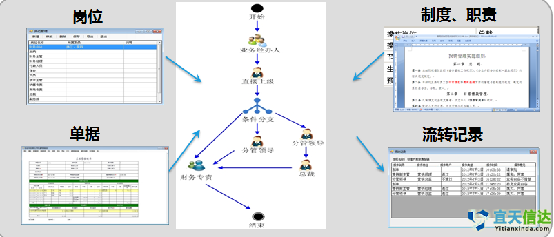 通過流程管理平臺,實現以業(yè)務流程為主線,將制度、崗位、職責、單據等管理