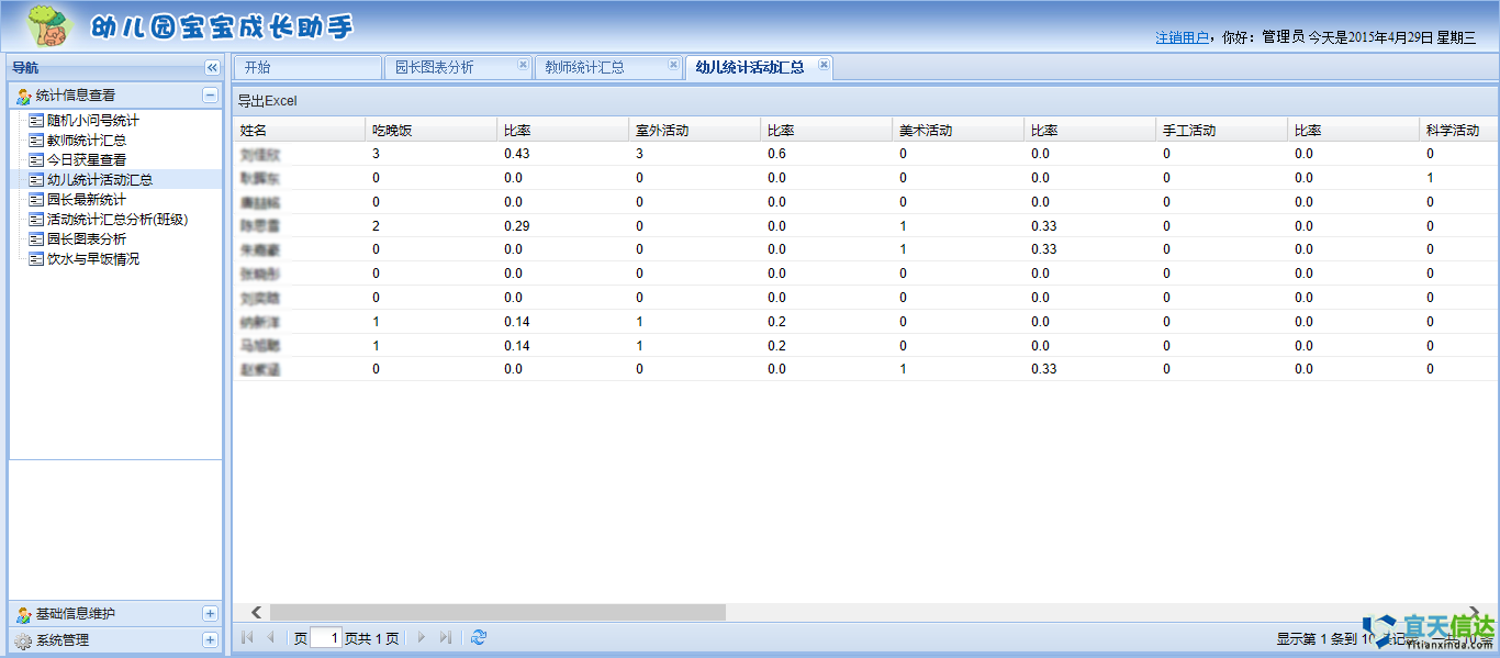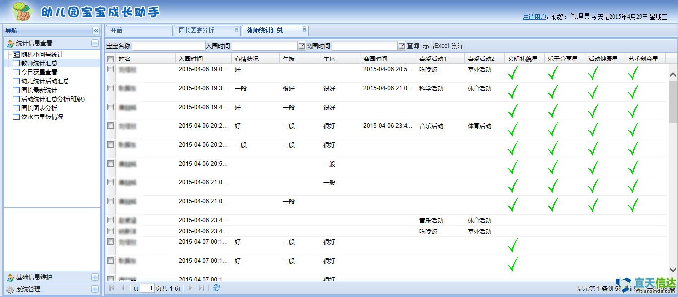 ?后臺(tái)記錄寶寶每天成長(zhǎng)信息,園長(zhǎng)可在此即基礎(chǔ)上查看全園統(tǒng)計(jì)信息作為教學(xué)參考