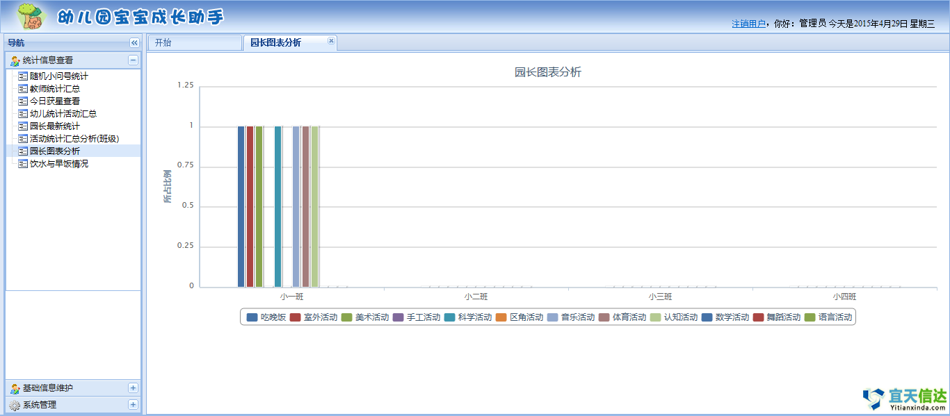 ?后臺(tái)記錄寶寶每天成長(zhǎng)信息,園長(zhǎng)可在此即基礎(chǔ)上查看全園統(tǒng)計(jì)信息作為教學(xué)參考